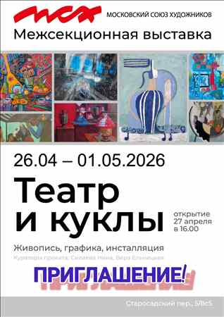 В год 250-летия Большого театра в стенах выставочного зала Московского Союза художников члены нескольких секций Союза представляют Вашему вниманию выставку «Театр и куклы», которая состоится в период с 25 апреля по 1 мая на площадке МСХ по адресу: Старосадский пер. д.5.