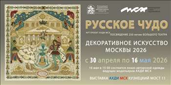 С 30 апреля по 16 мая 2026 года в залах Московского Дома художника (ул. Кузнецкий Мост, д.11) состоится выставочный проект «РУССКОЕ ЧУДО», посвященный 250-летию Большого театра, которое отмечается в 2026 году. Это возможность поздравить главный театр России с замечательным юбилеем и показать яркую, запоминающуюся выставку произведений художников декоративных искусств Москвы.